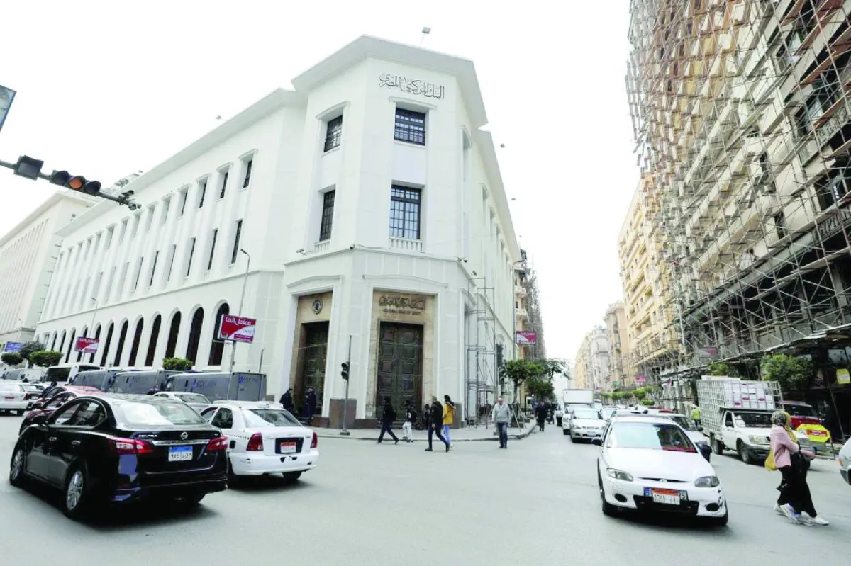 مارة وسيارات أمام مقر البنك المركزي المصري في القاهرة (رويترز)