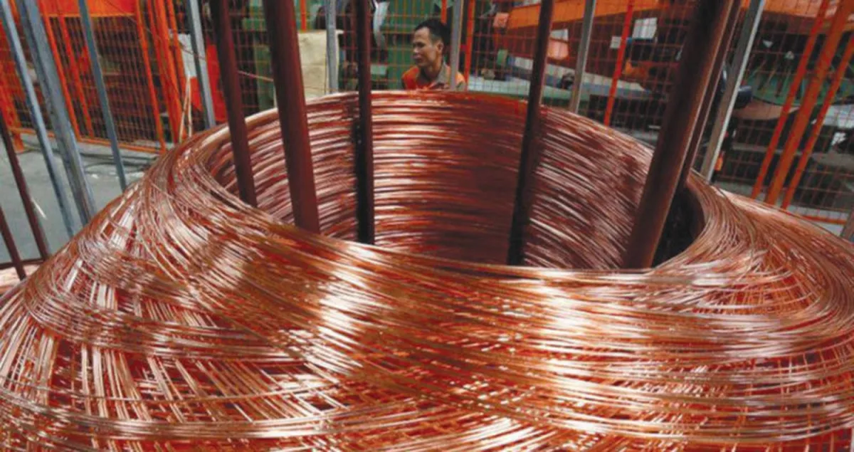 ماكينة تقوم بلف أمتار من النحاس في أحد المصانع الصينية (رويترز)