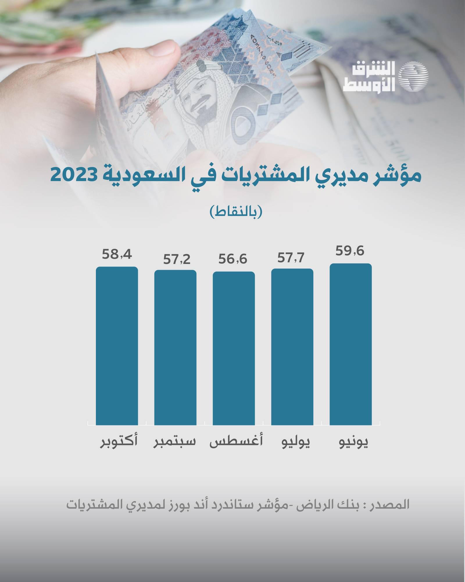 وكشف البنك عن ارتفاع المؤشر في السعودية إلى 58.4 نقطة، مقارنة بـ57.2 نقطة في سبتمبر (أيلول) الماضي، وهي أعلى قراءة منذ يونيو (حزيران). وتشير أي قراءة أعلى من 50 نقطة للمؤشر إلى تحسن عام في ظروف الأعمال.