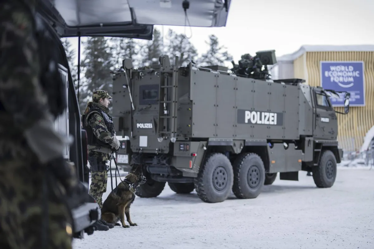 أعلنت الحكومة السويسرية عن خطة متكاملة لتأمين المنتدى الاقتصادي العالمي والمشاركين فيه. وينتشر 5 آلاف جندي في دافوس وحولها، فضلاً عن عدد كبير من عناصر الأمن والشرطة السويسريين من مختلف «الكانتونات» (الأقاليم). وتصبح دافوس في ظل هذه الإجراءات الأمنية المشدّدة أشبه بالقلعة المحصّنة، حيث تنتشر نقاط التفتيش في مداخلها، وتحيط الأسلاك الشائكة بمقرات المنتدى ومداخل الفنادق، ويُغلق مجالها الجوي أمام الطيران التجاري، ويعتلي قناصون أسطح المباني.