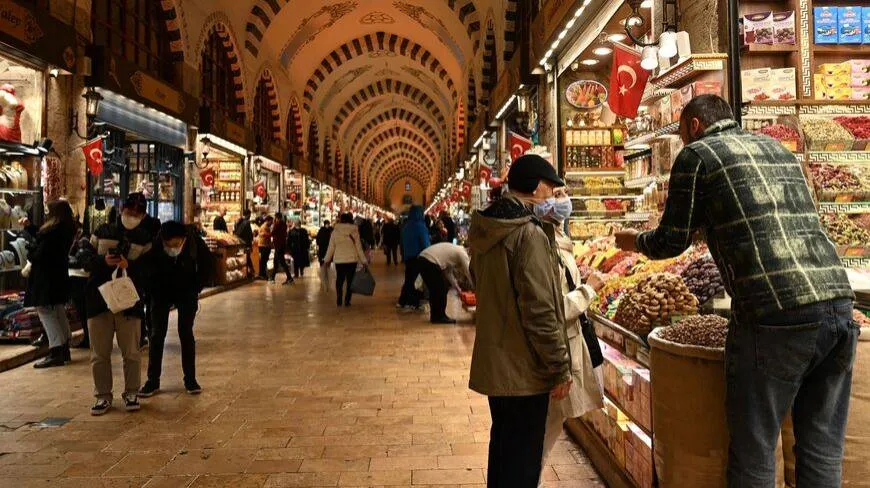 سائحون ومتسوقون في إحدى الأسواق الشعبية بمدينة إسطنبول التركية (أ.ف.ب)