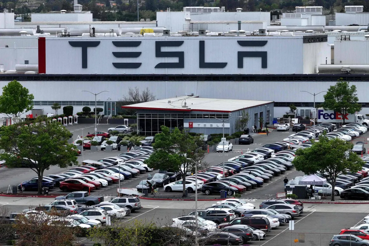 مصنع «تسلا» في ولاية كاليفورنيا الأميركية (أ.ف.ب)