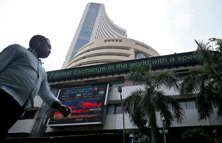 رجل يسير أمام مبنى بورصة مومباي في الهند (رويترز)