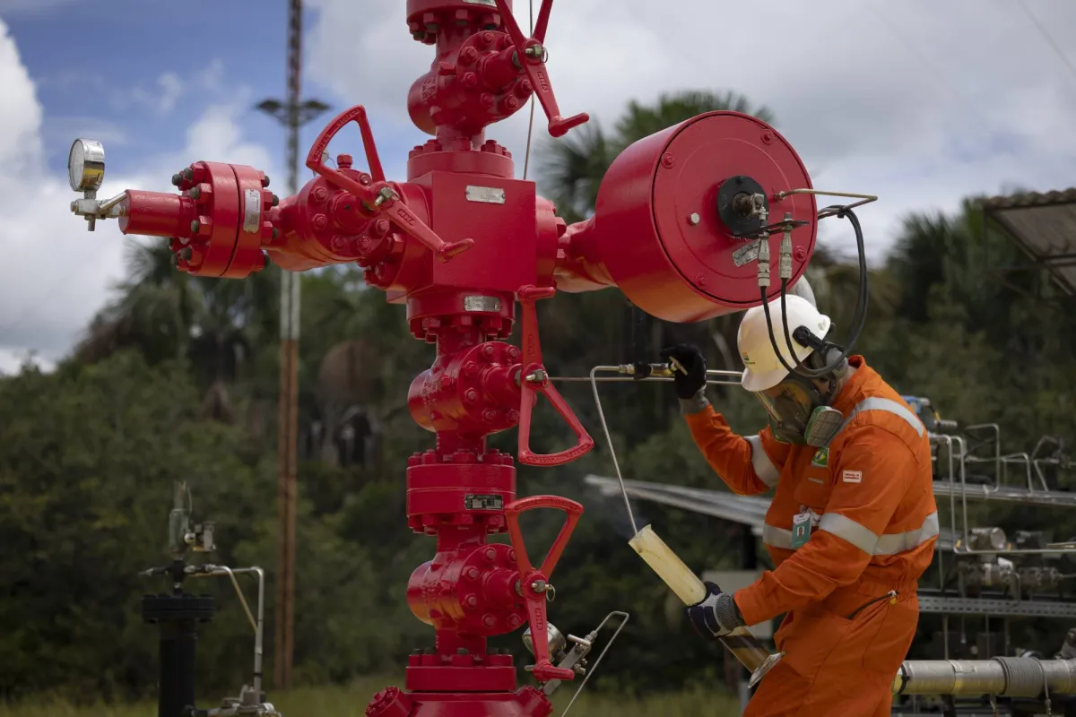 أحد موظفي «بتروبراس» يأخذ عينة زيت من بئر تم اكتشافه في منطقة أوروكو النفطية في كواري أمازوناس بالبرازيل (إي. بي أي)