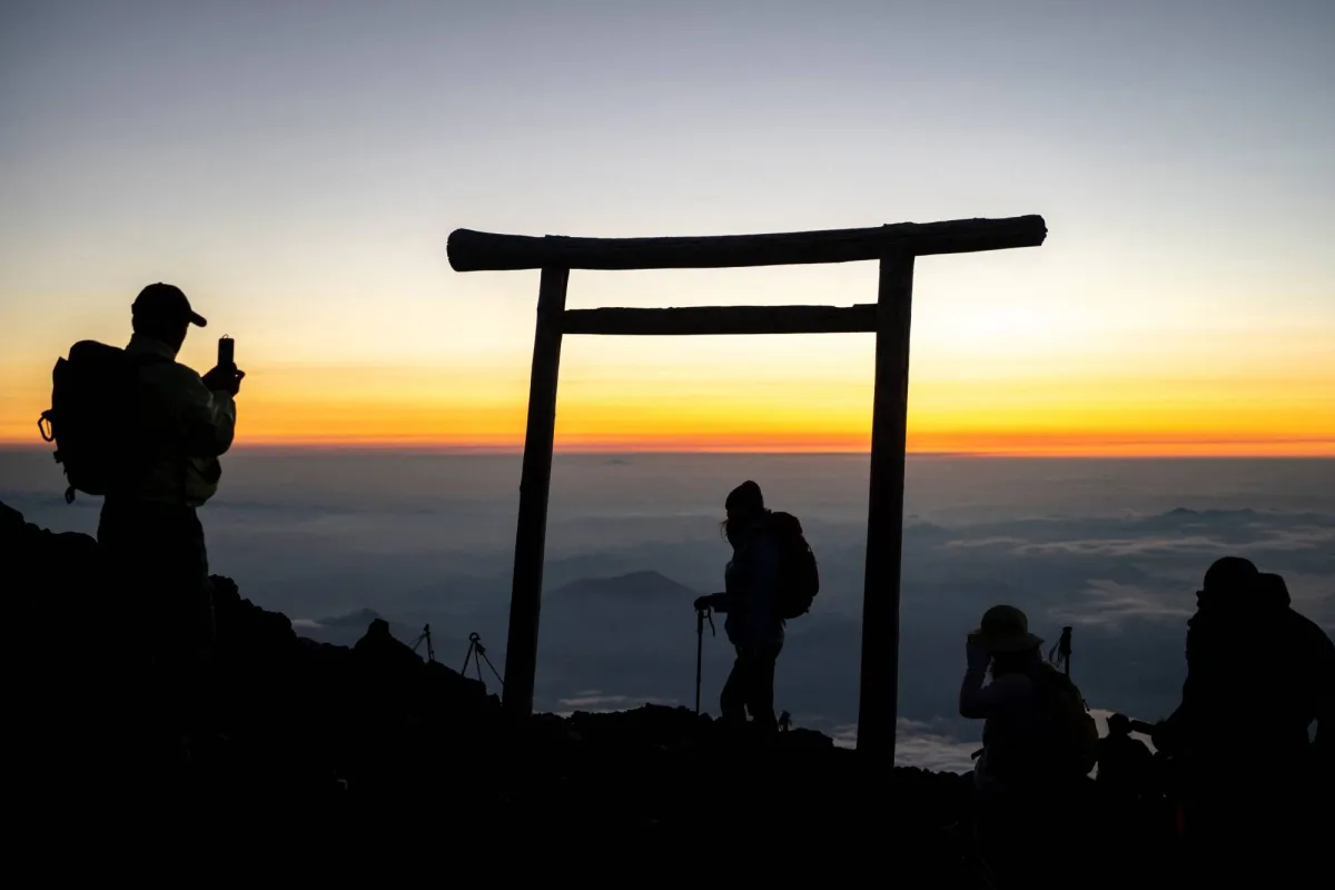 يابانيون يراقبون شروق الشمس قرب جبل فوجي (أ.ف.ب)