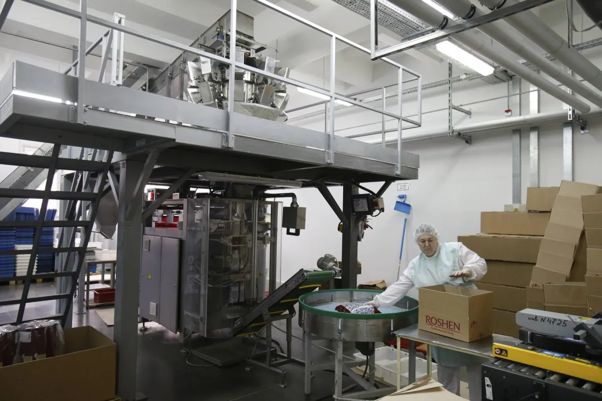 عامل بمصنع شركة «روشين» للحلويات في ليبيتسك الروسية (رويترز)