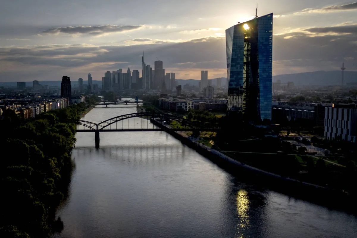 مقر المصرف المركزي الأوروبي في فرنكفورت حيث سيعقد مجلس إدارة المصرف اجتماعاً له لاتخاذ قرار بشأن الفائدة (أ.ب)