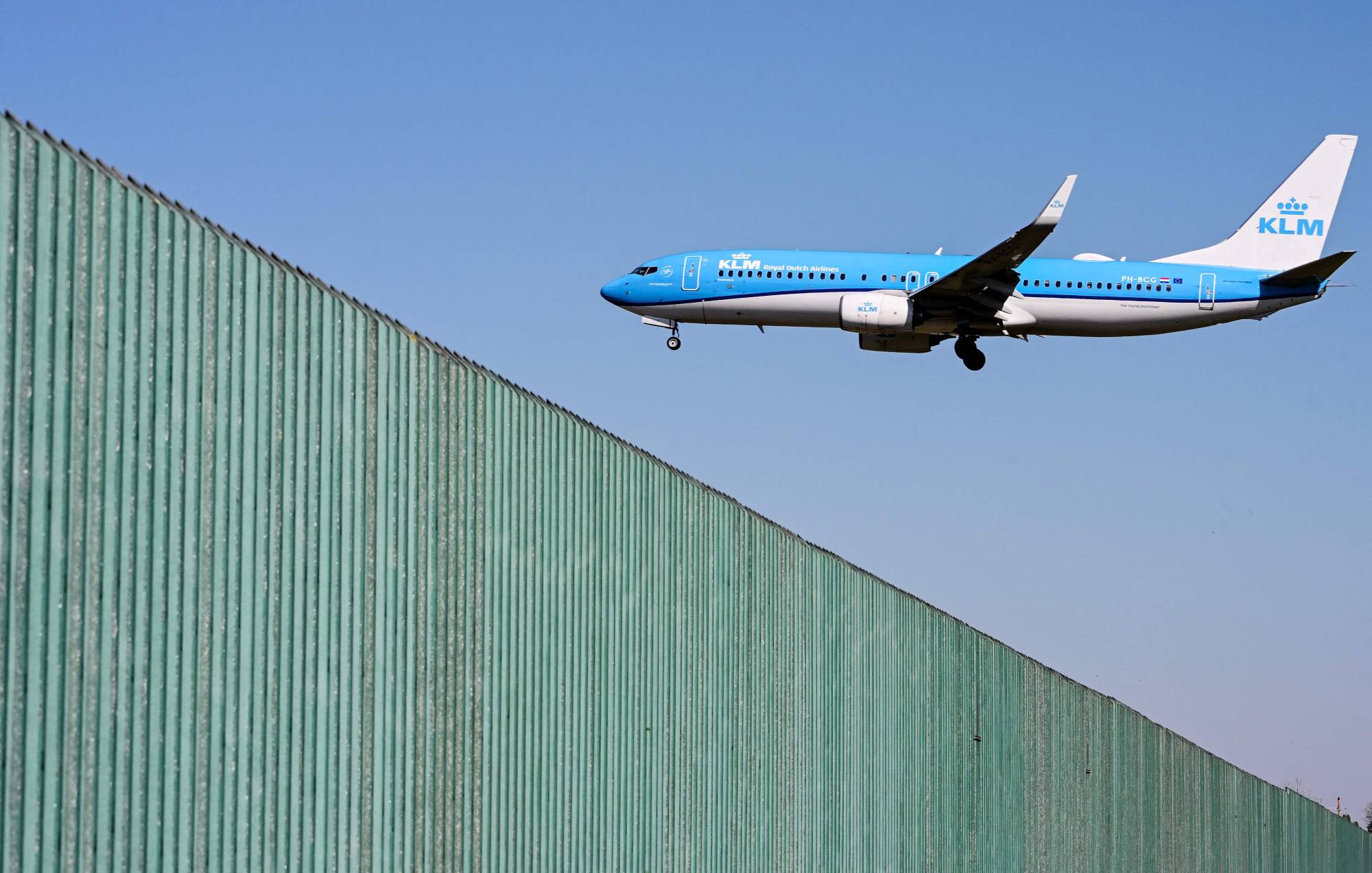 طائرة تابعة لشركة الخطوط الملكية الهولندية تتأهب للهبوط في مطار ميلانو شمال إيطاليا (أ.ف.ب)