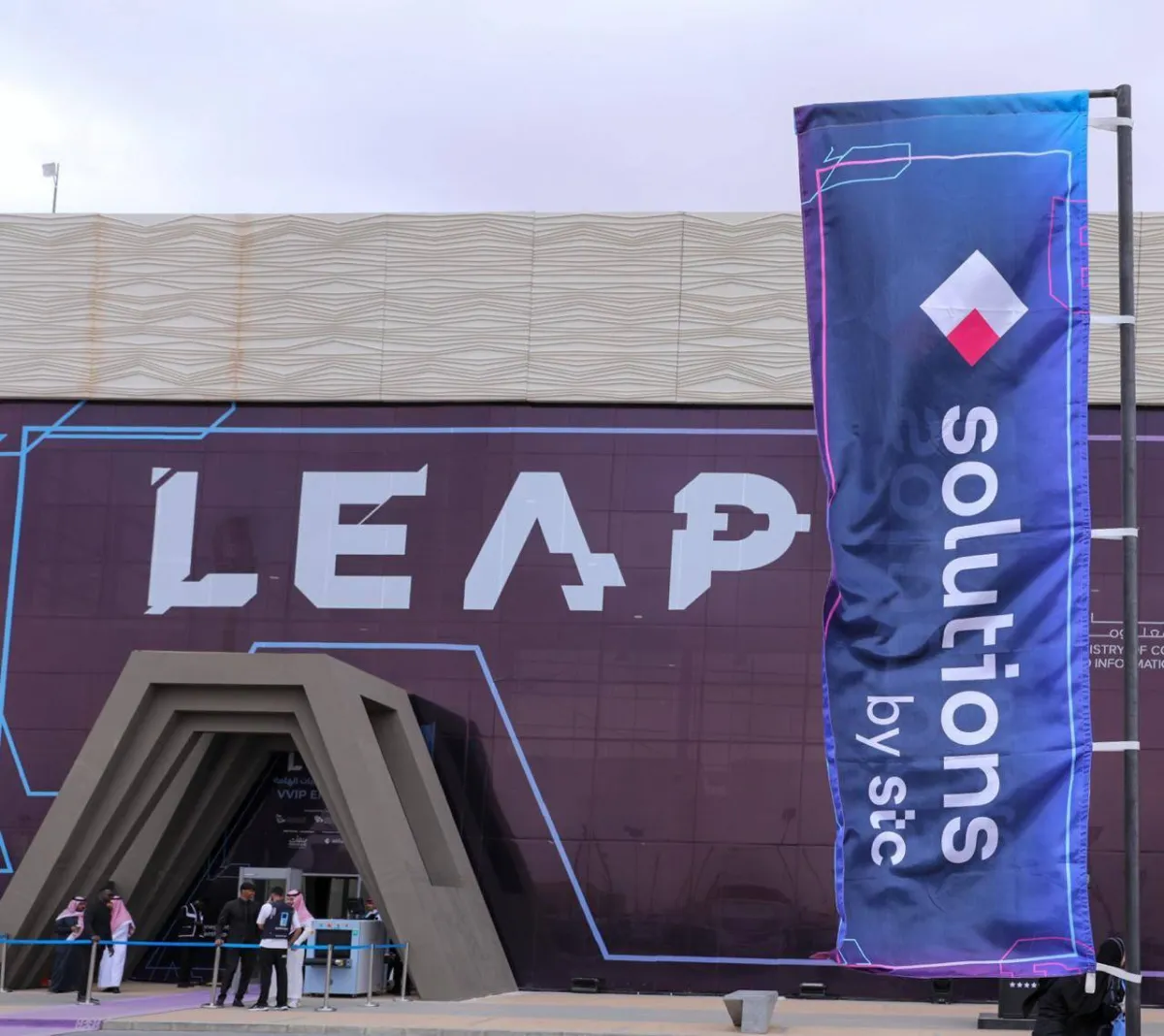 صورة من معرض «ليب 24» المقام بالعاصمة السعودية الرياض يظهر بها شعار شركة «سلوشنز» (إكس)