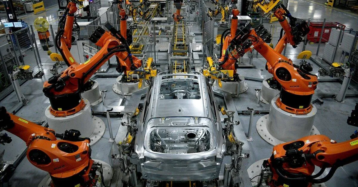 روبوتات تعمل في مصنع تابع لشركة «بي إم دبليو» في ولاية ساوث كارولاينا (رويترز)
