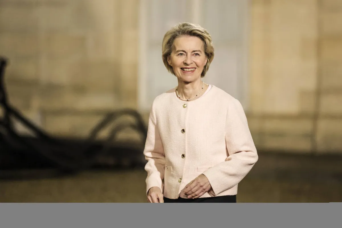 رئيسة المفوضية الأوروبية أورسولا فون دير لاين في قصر الإليزيه في باريس يوم الاثنين (إ.ب.أ)