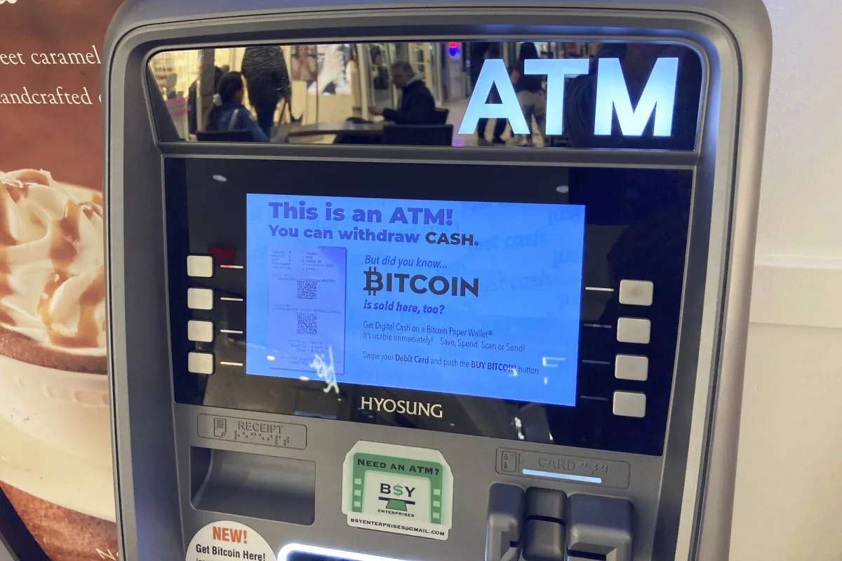 بيع عملة البتكوين في ماكينة صرف آلي في مركز للتسوق بنيو جيرسي (أ.ب)