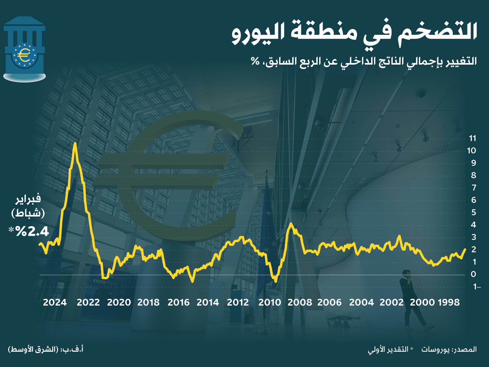 وخفض البنك المركزي الأوروبي أسعار الفائدة 5 مرات منذ يونيو (حزيران) الماضي، استجابةً للتراجع السريع في التضخم. ومن المتوقع أن يواصل هذه السياسة، خصوصاً مع ازدياد الحاجة إلى دعم النمو الاقتصادي الضعيف، وسط مخاوف مستمرة من ركود محتمل.