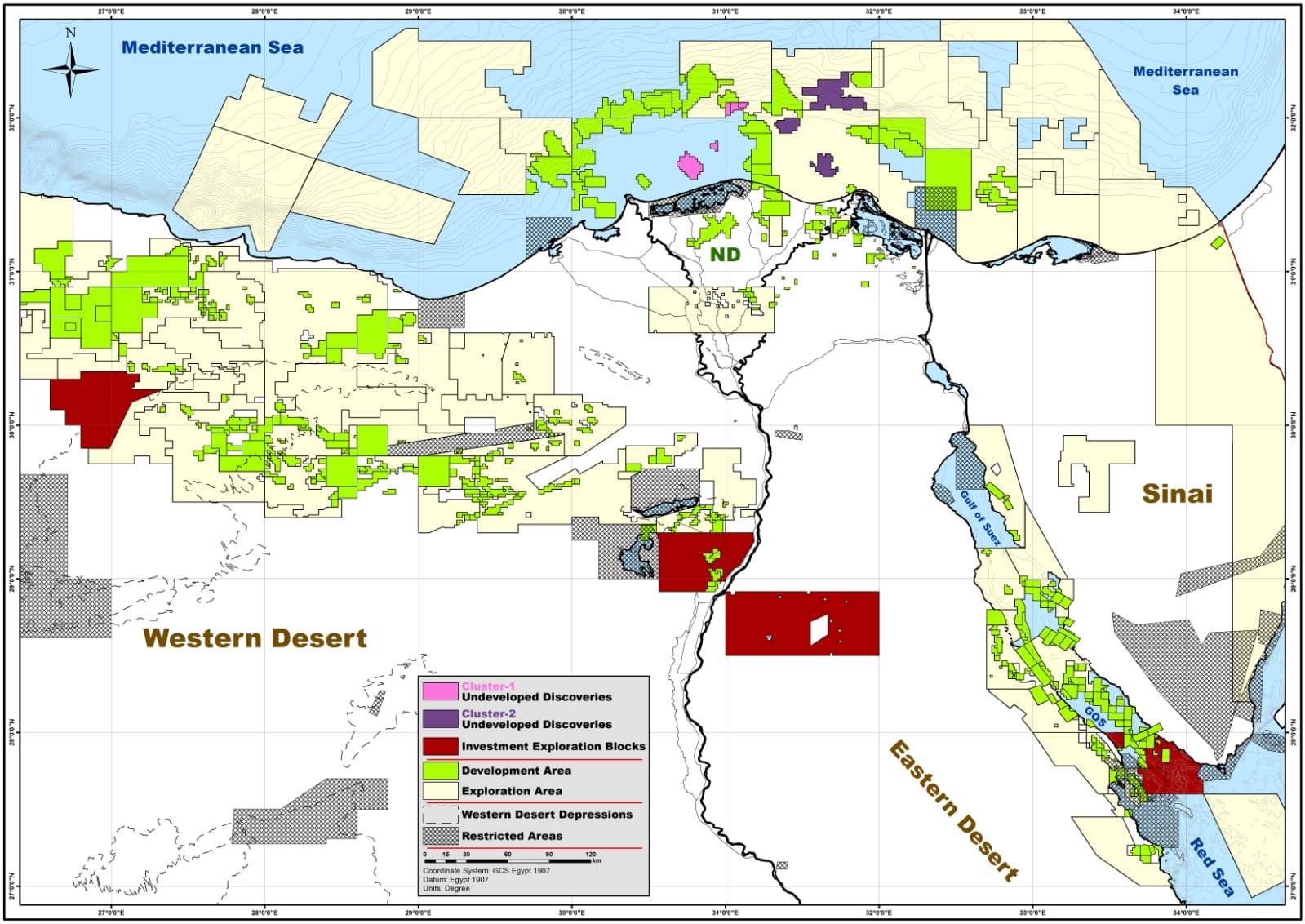 المناطق المطروحة للاستكشافات في مصر (بوابة مصر للاستكشاف والإنتاج)