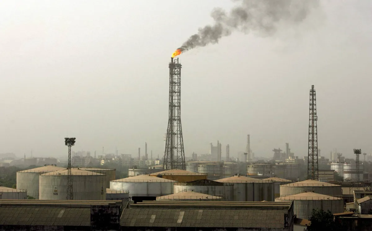 خزانات تخزين النفط في مصفاة شركة بهارات للبترول المحدودة في مومباي (رويترز)