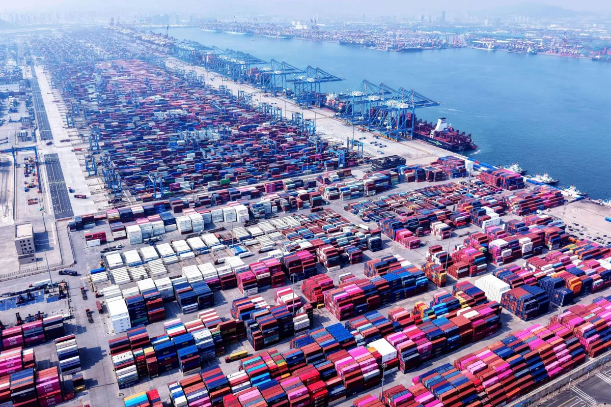 حاويات في طريقها للتصدير بميناء قينغداو شرق الصين (أ.ف.ب)