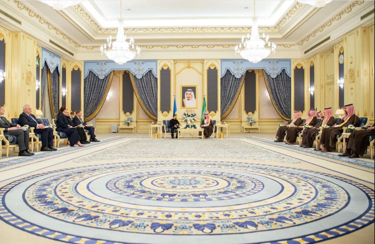 واستقبل الأمير محمد بن سلمان، ولي العهد رئيس مجلس الوزراء، الرئيس الأوكراني زيلينسكي في قصر السلام بجدة، وعقدا جلسة مباحثات رسمية، استعرضا خلالها أوجه العلاقات المميزة بين البلدين الصديقين، وعبَّرا عن رغبتيهما في تعزيزها في جميع المجالات.