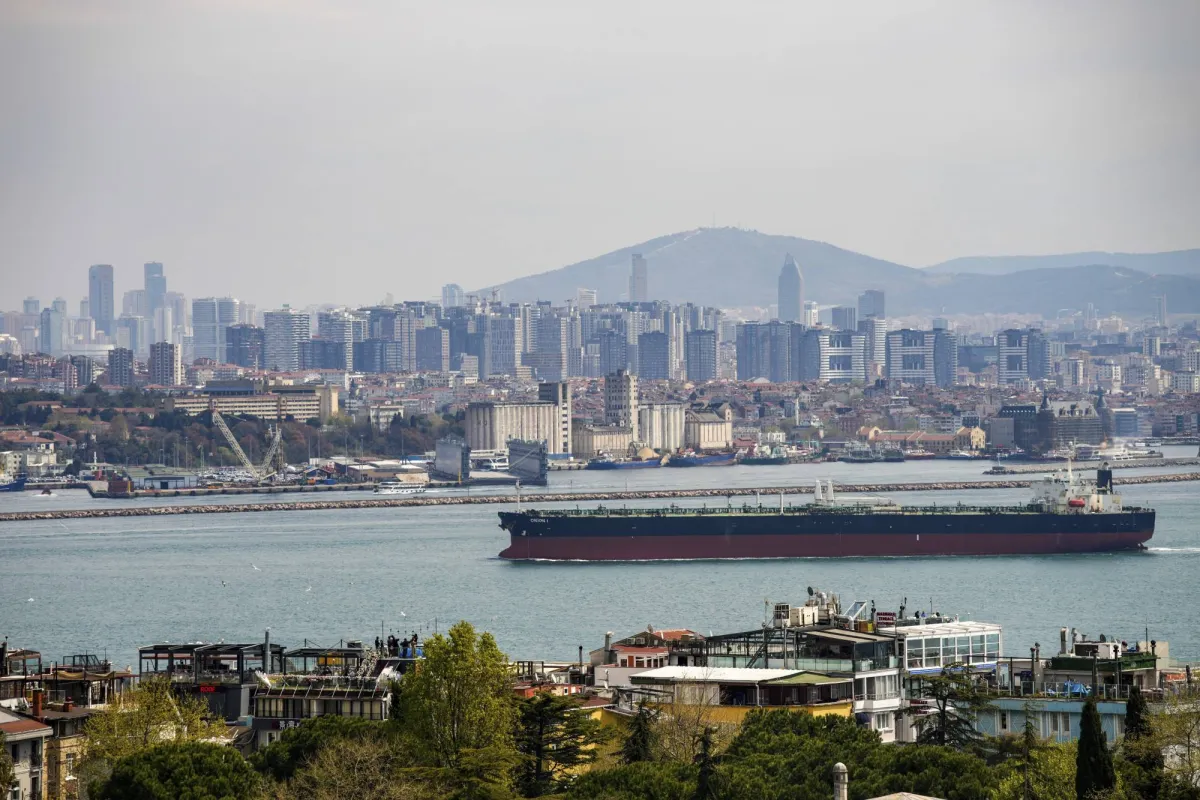 ناقلة النفط الخام «أوريون 1» تبحر عبر مضيق البوسفور في إسطنبول (أ.ب)