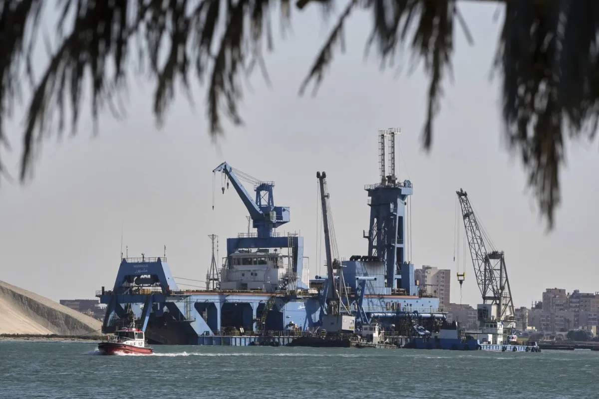 سفينة القَطر المصرية «مشهور» تبحر عبر قناة السويس قرب مدينة الإسماعيلية (أ.ب)