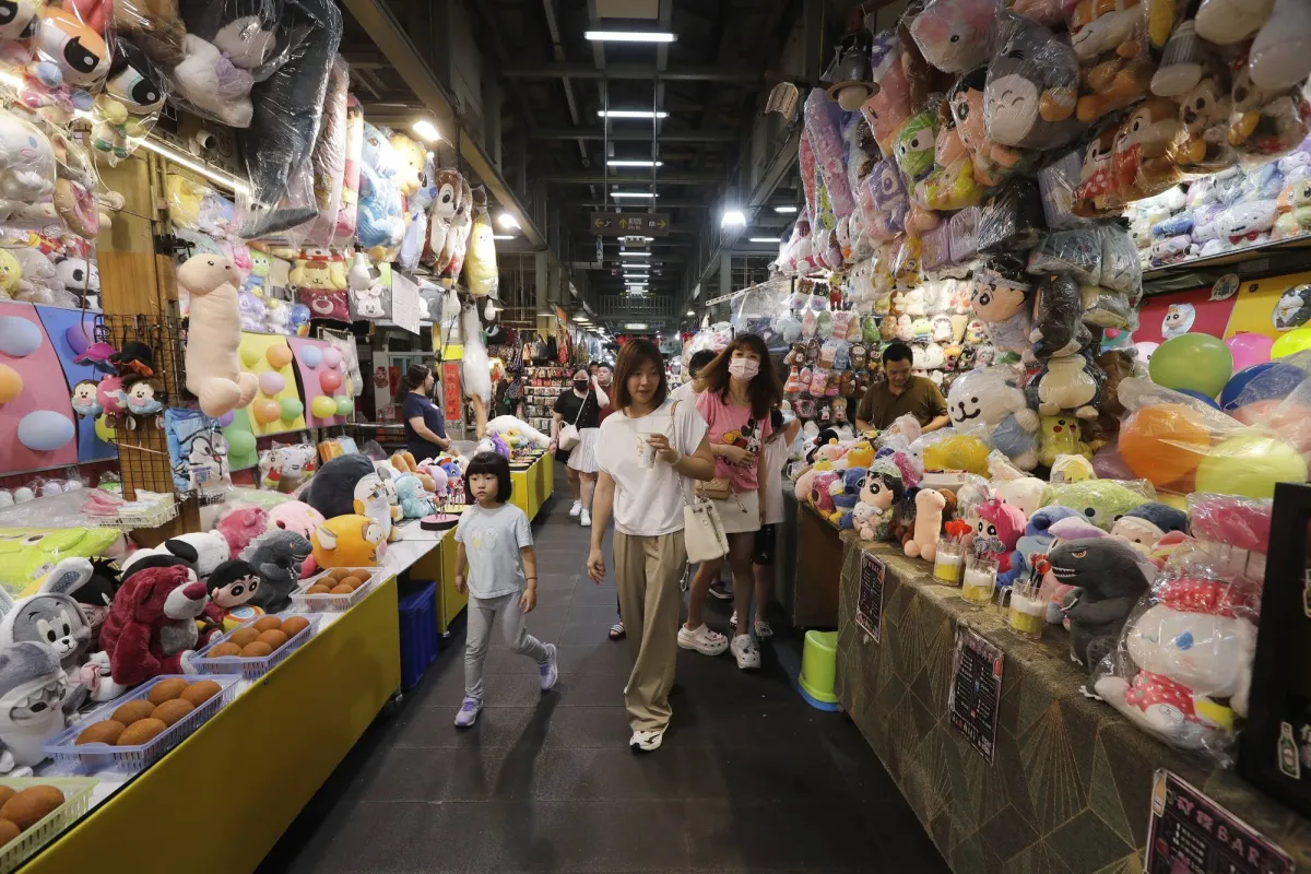 زوار لسوق شعبية في العاصمة التايوانية تايبيه (أ.ب)