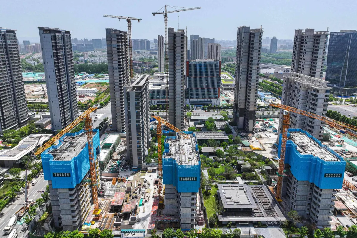 مجمع سكني تحت الإنشاء في مدينة نانجينغ شرق الصين (أ.ف.ب)