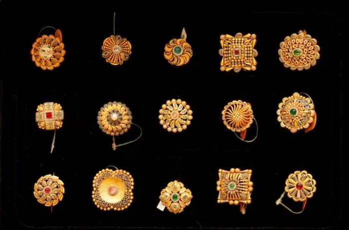 قطع ذهبية للبيع داخل محل مجوهرات في سريناغار (رويترز)