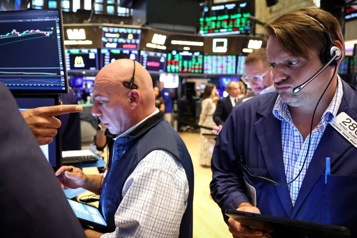 عاملون خلال ساعات التداول في بورصة نيويورك (رويترز)