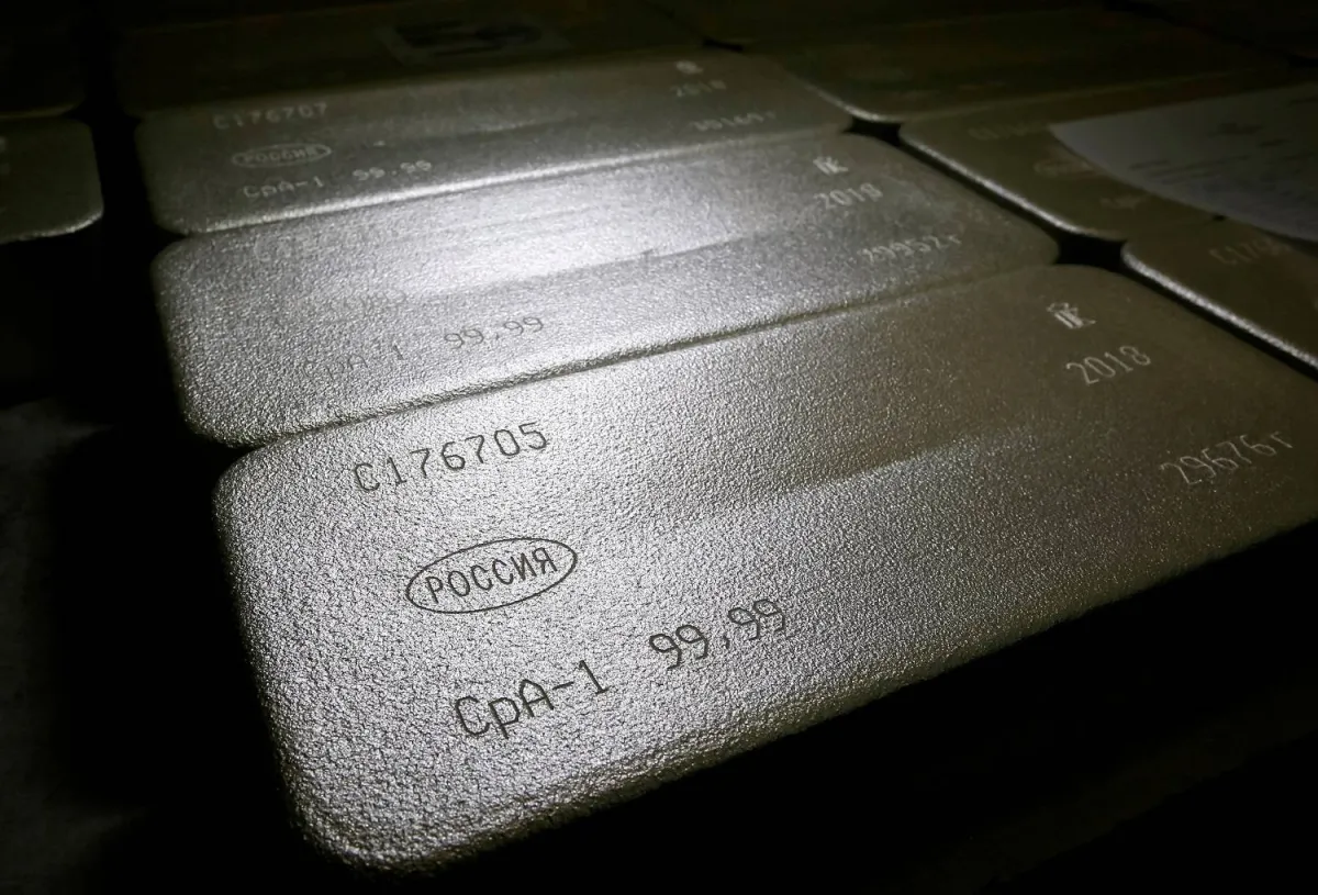 سبائك فضة في مصنع كراستسفيتميت بمدينة كراسنويارسك الروسية (أرشيفية - رويترز)