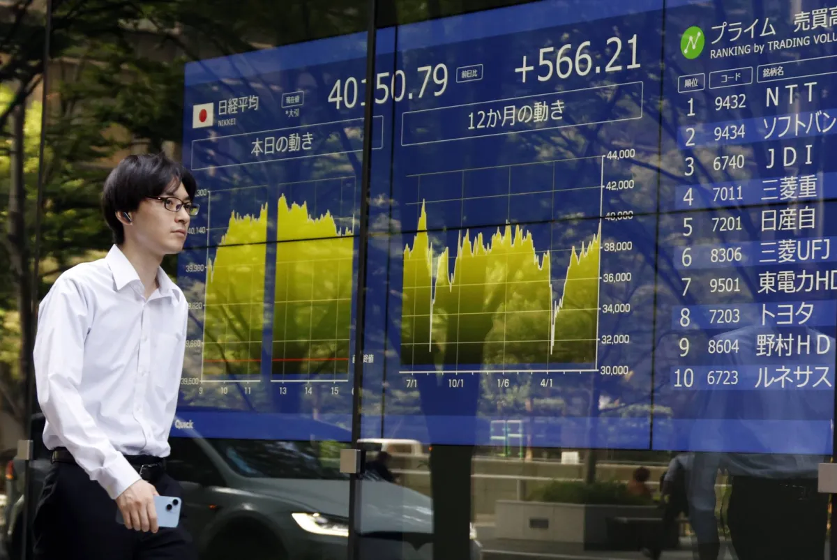 رجل يمر أمام لوحة إلكترونية تعرض حركة الأسهم في العاصمة اليابانية طوكيو (إ.ب.أ)