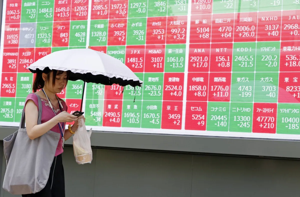 سيدة تمر أمام لوحة إلكترونية تعرض حركة الأسهم في العاصمة اليابانية طوكيو (إ.ب.أ)