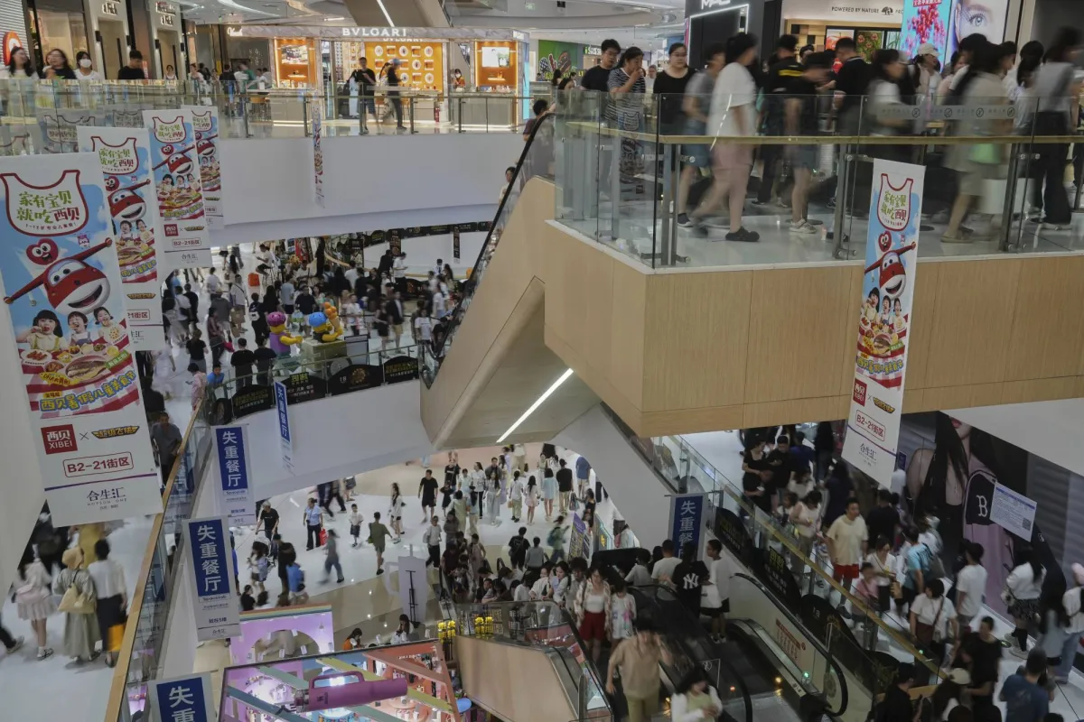 متسوقون في أحد المراكز التجارية الكبرى بالعاصمة الصينية بكين (أ.ب)