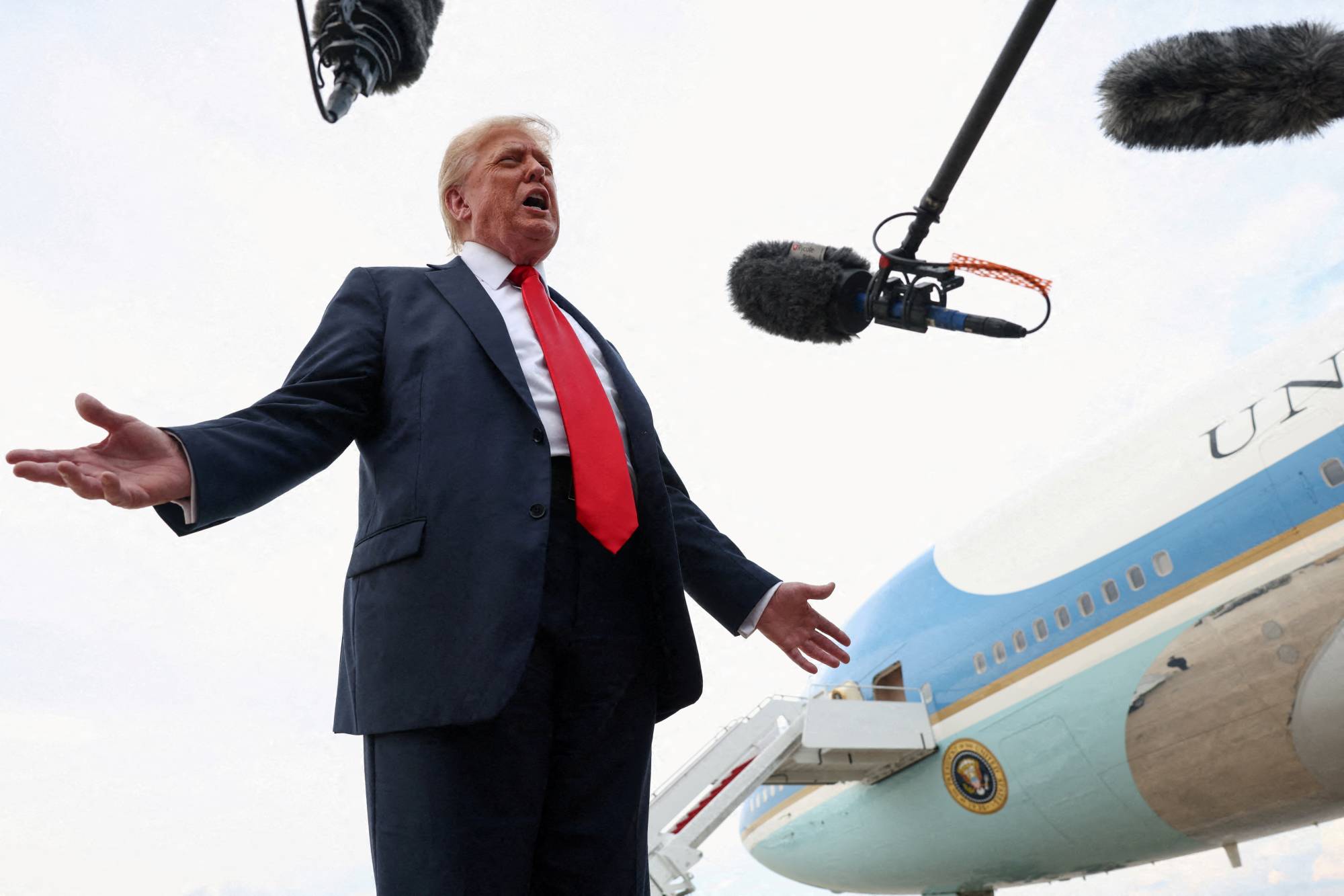 الاقتصاد ترمب يجيب عن أسئلة الصحافيين على متن الطائرة الرئاسية من فلوريدا إلى ماريلاند 4 يناير 2026 (رويترز)