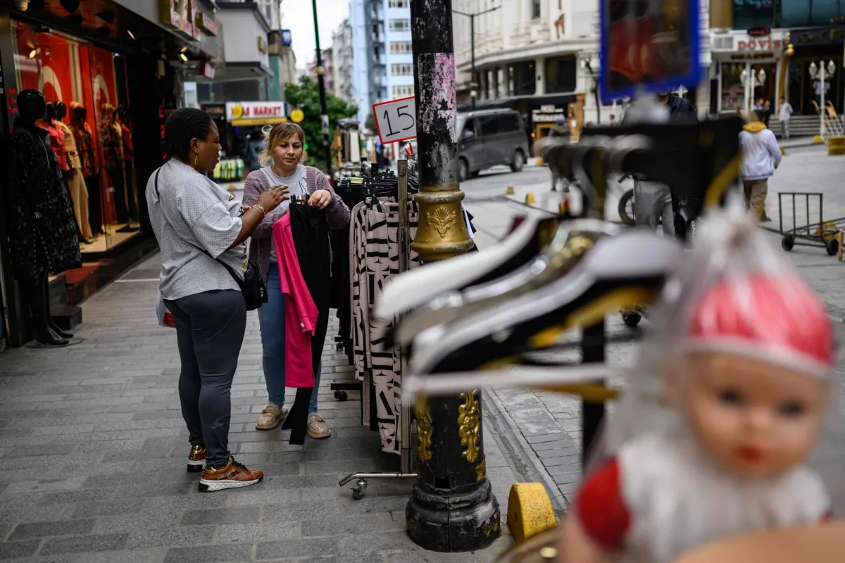 إحدى الأسواق الشعبية للملابس في إسطنبول (أ.ف.ب)