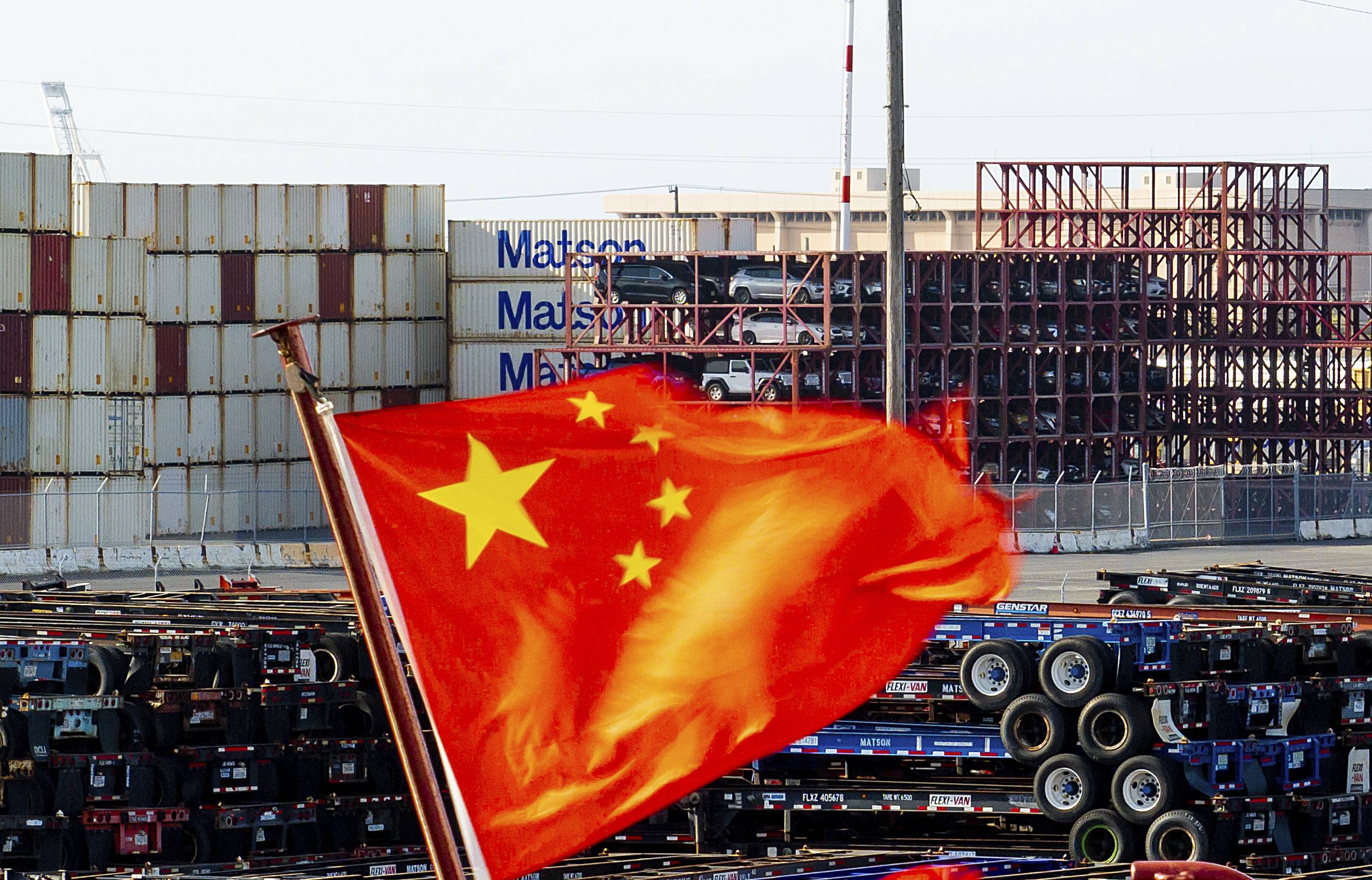 العلم الصيني يرفرف على سفينة في ميناء أوكلاند (أ.ب)