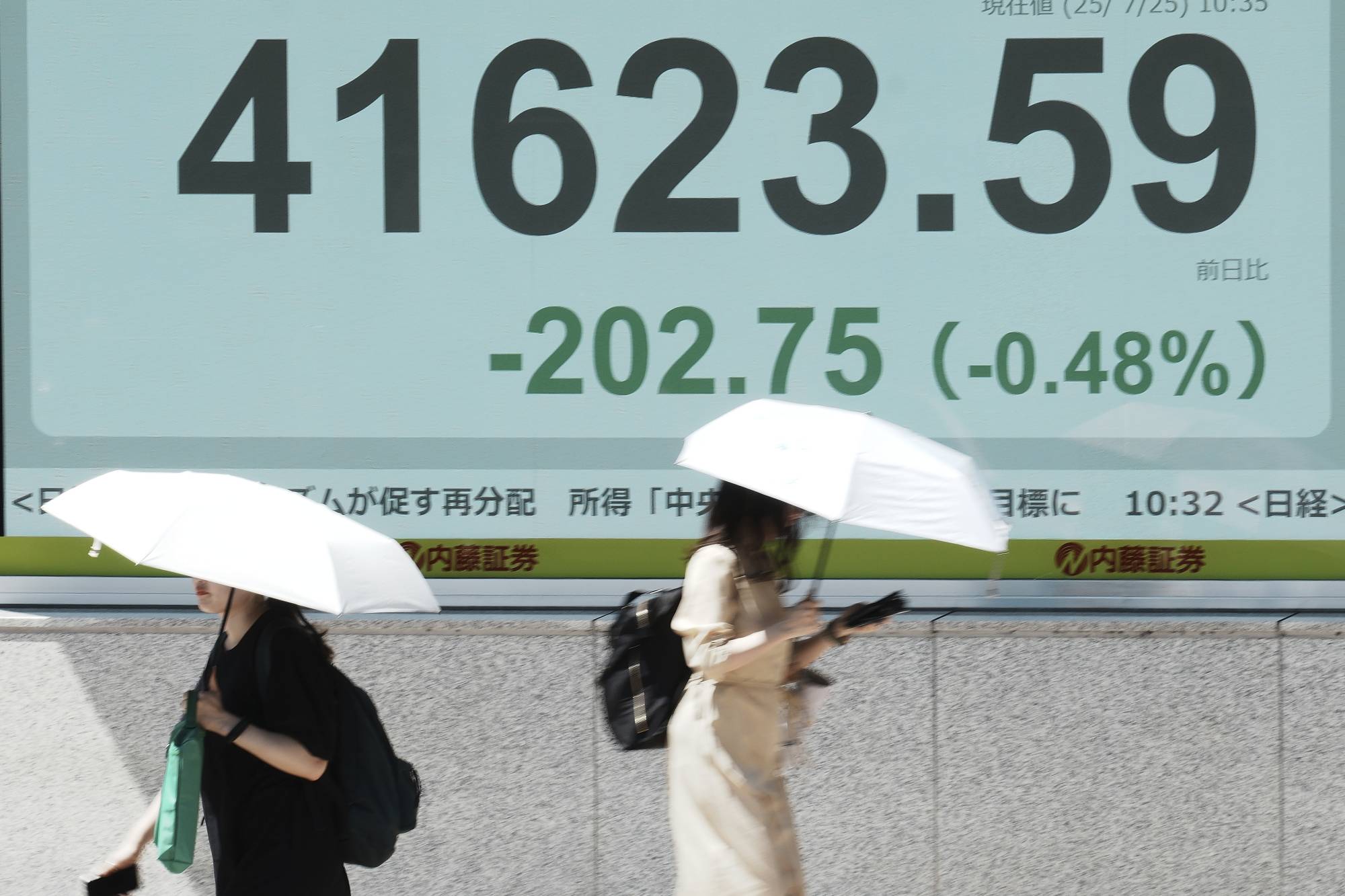 خسر مؤشر نيكاي 225 في طوكيو 1.1 في المائة ليصل إلى 40998.27 نقطة بعد ظهور شكوك حول ما ينطوي عليه بالضبط الهدنة التجارية التي تمت الأسبوع الماضي بين اليابان وترمب، خاصة تعهد اليابان باستثمار 550 مليار دولار في الولايات المتحدة.