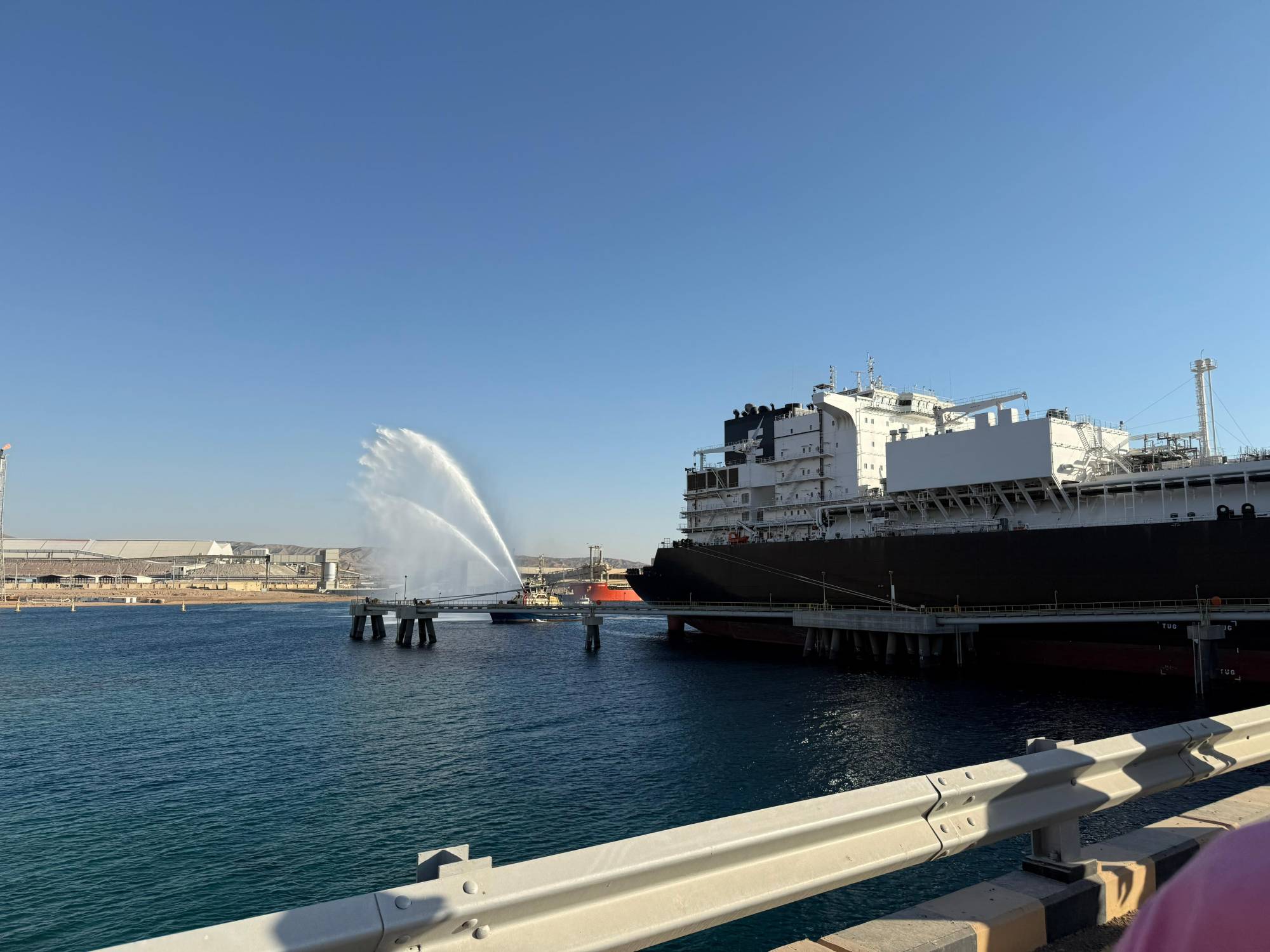 وأوضح البيان أن الوزيرين تابعا استعداد السفينة «لبدء استقبال شحنات الغاز الطبيعي المسال المستورد، لإعادة تغييزه وضخه في شبكة خط الغاز العربي، حيث ستسهم هذه السفينة في تأمين إمدادات الطاقة لقطاعات الاستهلاك المختلفة في البلدين، والتعامل الفعال مع أي طارئ».