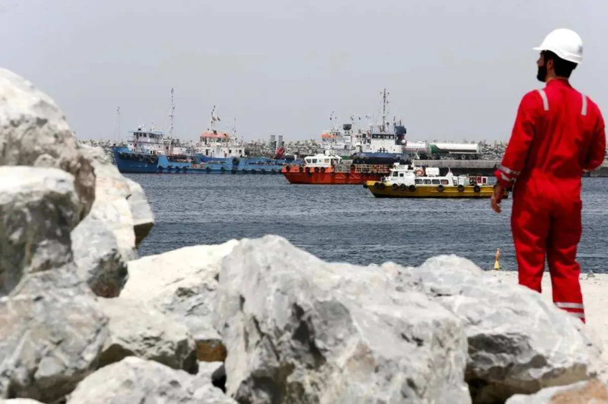أحد أفراد الأطقم الفنية يتابع حركة السفن في ميناء الفجيرة بالإمارات (رويترز)