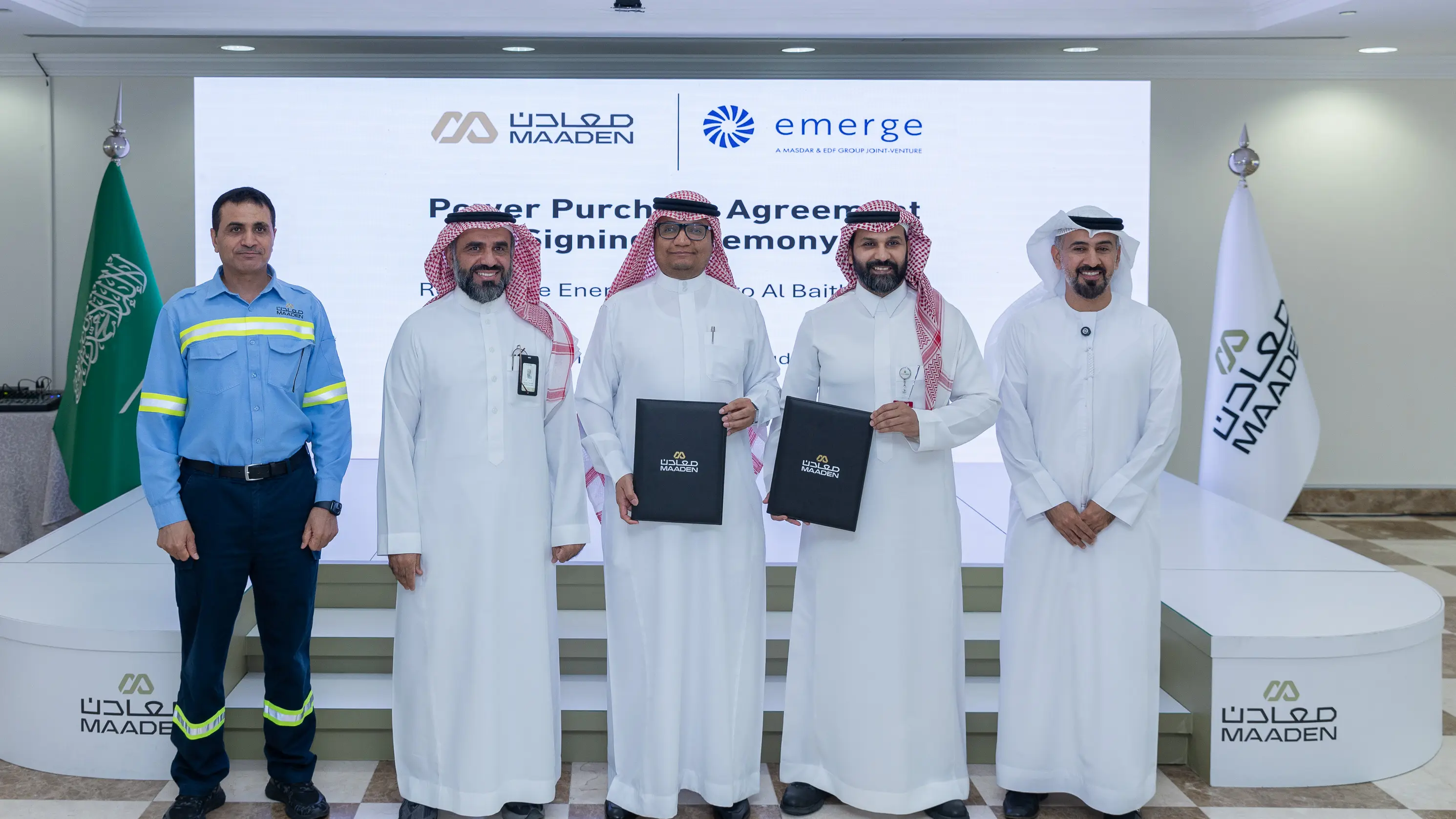 وقّعت شركة «معادن للبوكسايت والألومينا»، التابعة لـ«معادن»، اتفاقية شراء للطاقة مع شركة «إميرج»، المشروع المشترك بين «مصدر» الإماراتية و«إي دي إف باور سولوشنز» الفرنسية، لتطوير محطة طاقة شمسية غير متصلة بالشبكة؛ لتزويد منجم البعيثة بالطاقة النظيفة والمتجددة.