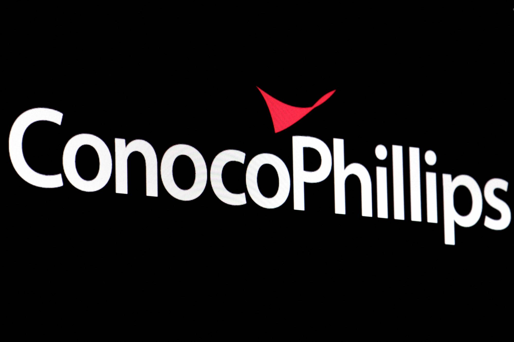 شاشة تعرض شعار شركة «كونوكو فيليبس» في قاعة بورصة نيويورك (رويترز)