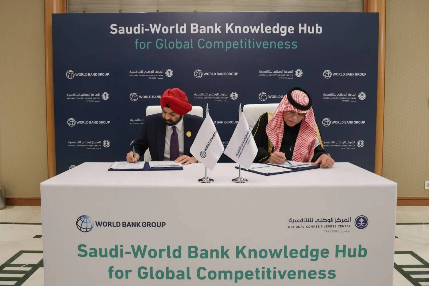 خلال توقيع وزير التجارة السعودي ورئيس البنك الدولي على اتفاقية إنشاء مركز للمعرفة في الرياض بديسمبر (البنك الدولي)