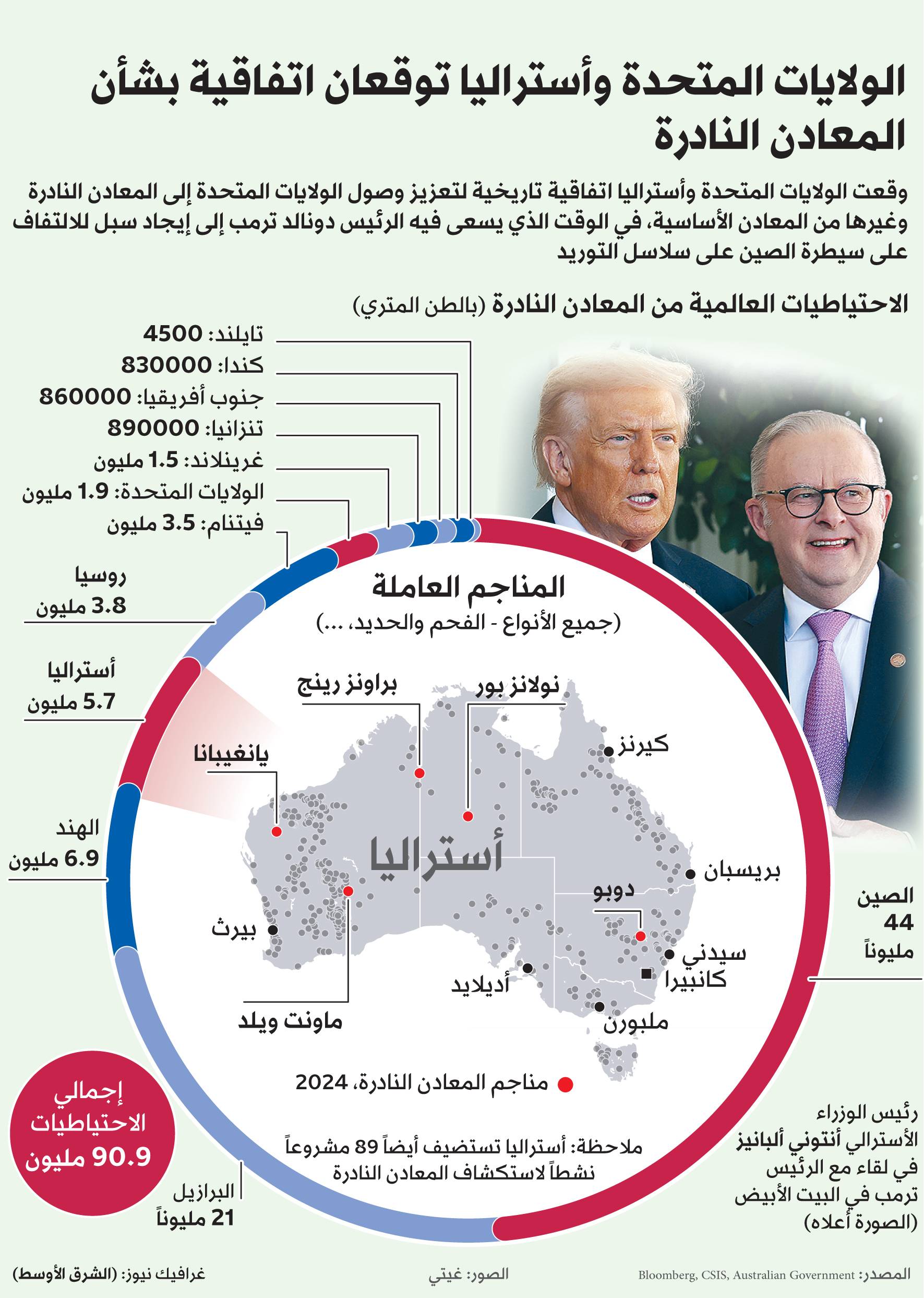 وقّع الرئيس الأميركي دونالد ترمب ورئيس الوزراء الأسترالي أنتوني ألبانيز اتفاقية حاسمة في البيت الأبيض يوم الاثنين بشأن المعادن الحيوية.