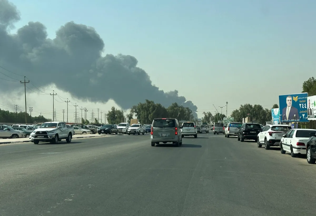 الدخان يتصاعد من حريق في خط أنابيب بحقل الزبير النفطي بالعراق (رويترز)