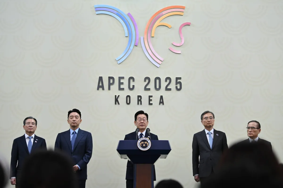 رئيس كوريا الجنوبية يتحدث في ختام قمة «أبيك»... (د.ب.أ)