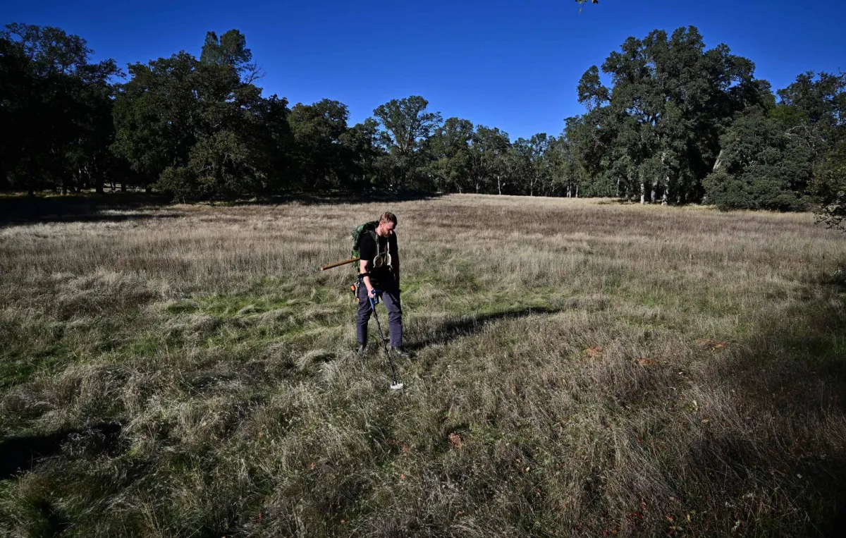كودي بلانشارد يستخدم جهاز الكشف عن الذهب في مقاطعة إل دورادو شمال ساكرامنتو بكاليفورنيا 27 أكتوبر 2025 (أ.ف.ب)