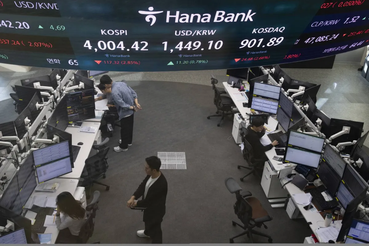 الاقتصاد متداولون كوريون جنوبيون يعملون أمام شاشات في بنك هانا بسيول (إ.ب.أ)