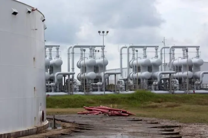 خزان نفط ومعدات أنابيب في الاحتياطي النفطي الاستراتيجي بفريبورت تكساس (رويترز)
