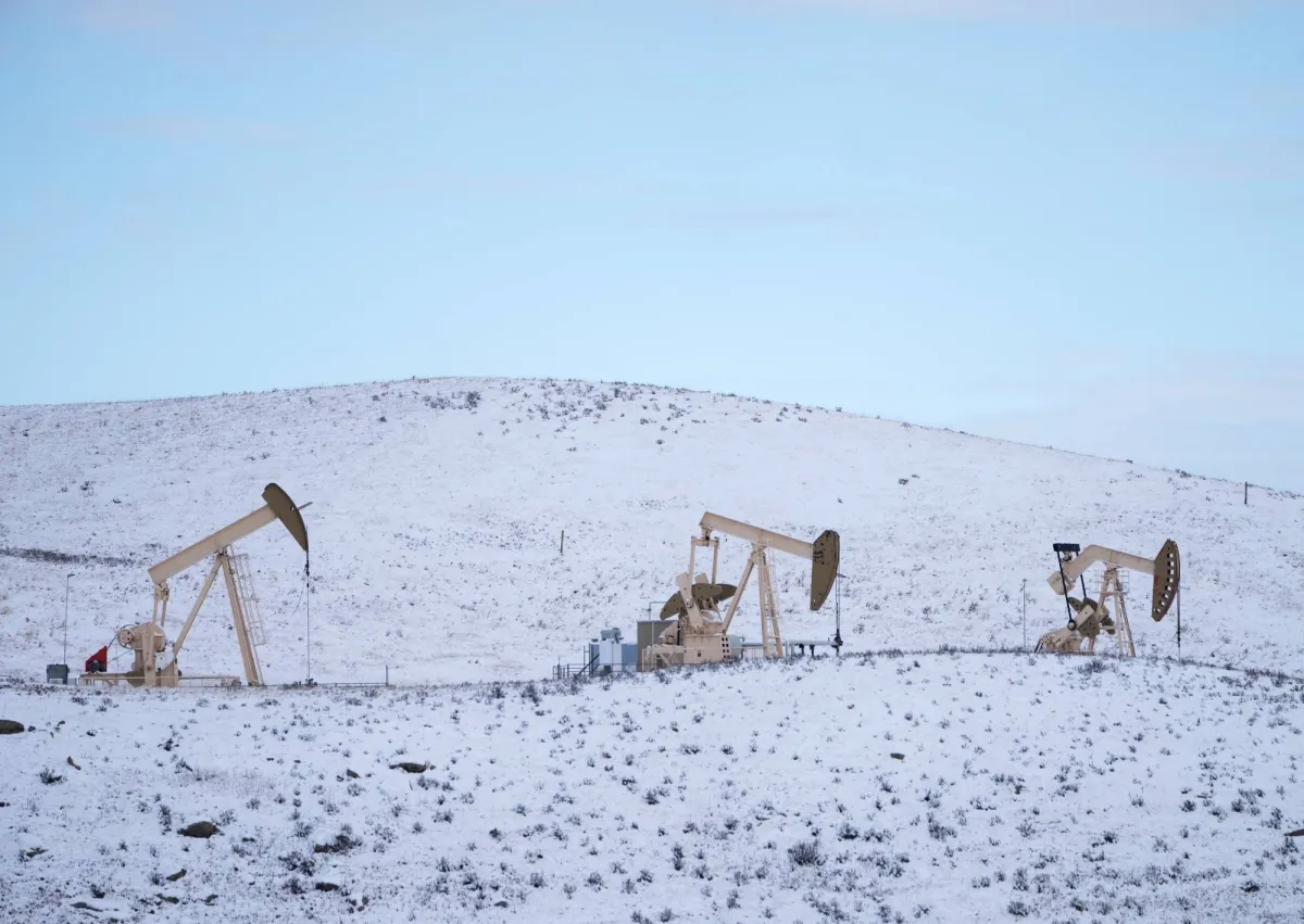 مضخات نفط تعمل في حقل مزارع بالقرب من كالغاري (رويترز)