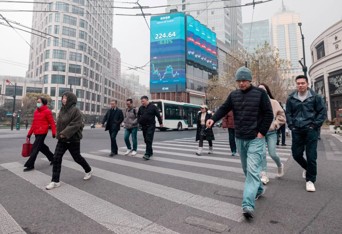 مشاة في أحد الشوارع بالضاحية المالية في مدينة شنغهاي (إ.ب.أ)