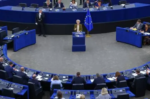 تُلقي رئيسة المفوضية الأوروبية أورسولا فون دير لاين خطاب «حال الاتحاد الأوروبي» أمام البرلمان الأوروبي في ستراسبورغ بفرنسا (رويترز)