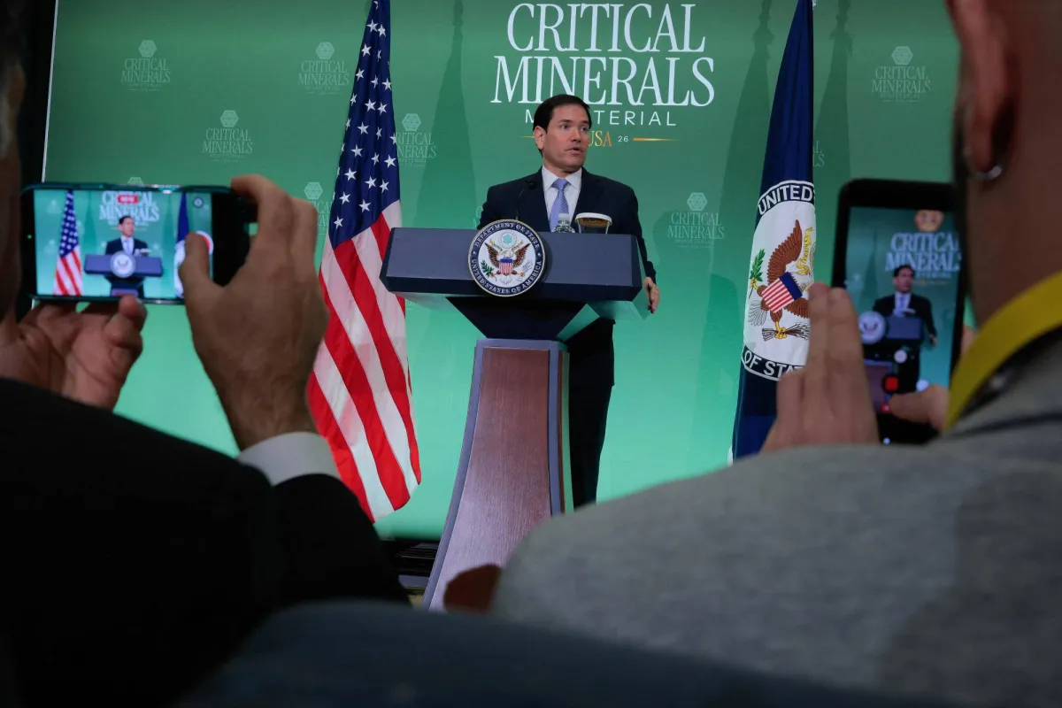 وزير الخارجية الأميركي ماركو روبيو خلال الإعلان عن التكتل التجاري للمعادن الحيوية في واشنطن (أ.ف.ب)
